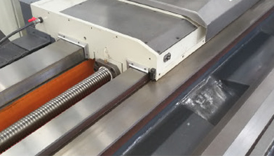 床身基准导轨采用整体超音频淬火,配合面加贴进口导轨软带,保证各进给部件微磨损运动,长期保持高精度、高稳定性。床鞍导轨和尾座导轨间设计一定的高度差,以保证切屑和冷却液不会侵入床鞍导轨。