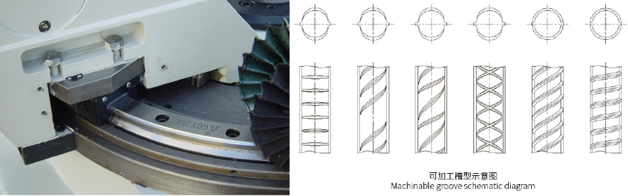 XK9350系列数控螺纹钢轧辊月牙槽铣床适合加工直径小于500mm,长度小于2500mm的轧辊,可自动加工φ6~φ50螺纹钢轧辊的各种规格月牙槽、等高肋槽(完全符合GB1499-2018标准)。